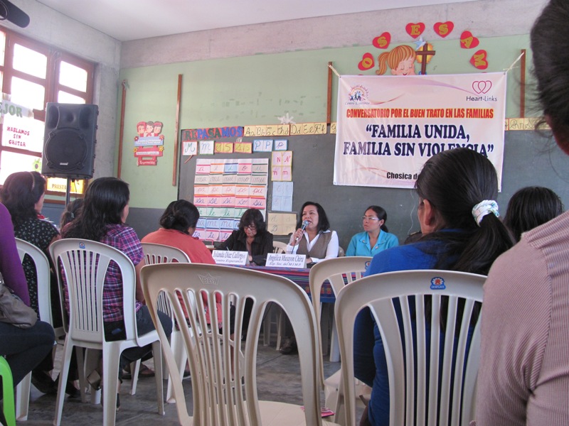 (On to more serious matters…)>Monday: an important meeting in the morning (at an elementary school) to discuss domestic violence; the campaign is called “Good treatment within families: united family, family without violence”. Representatives from Centro Esperanza were accompanied by the other interns and myself. The meeting involved mothers, about a dozen middle school students and one man/father from the rural suburbs of Chiclayo called “Chosica del Norte”, as well as several representatives of government bodies including the Ministry of Women and police. The meeting was meant as a starting point to generate discussion about the problems at hand in the neighbourhood; women were given the chance to talk about their experiences or present data about domestic violence and then panel responded.