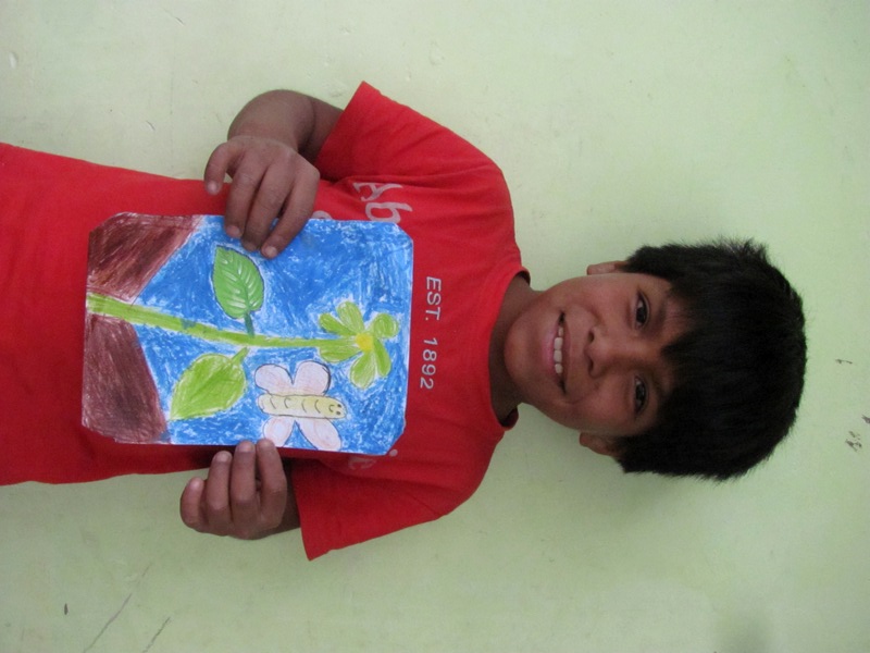 This was Ricardo 30 minutes prior with his drawing, inspired by a leaf cut out of recycled wrapping paper…
