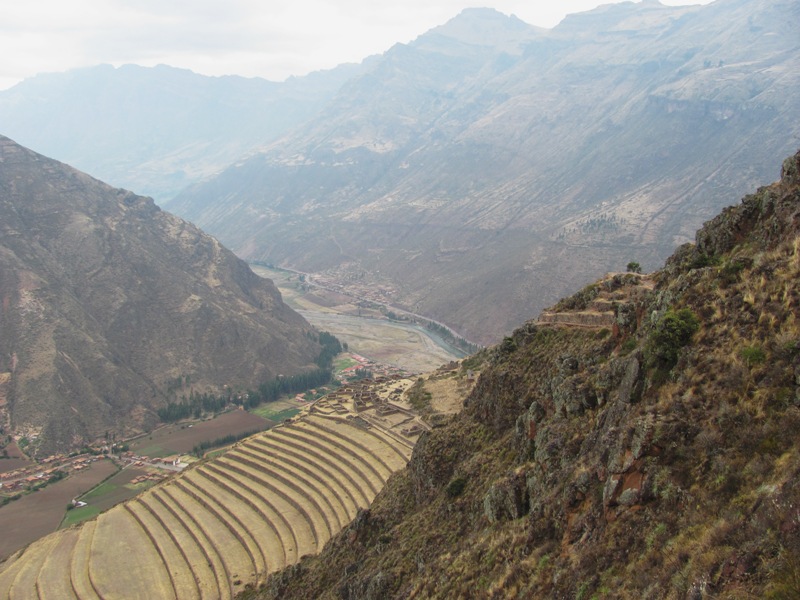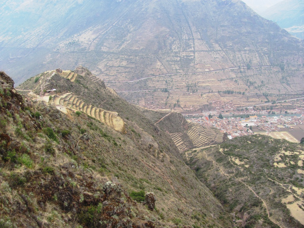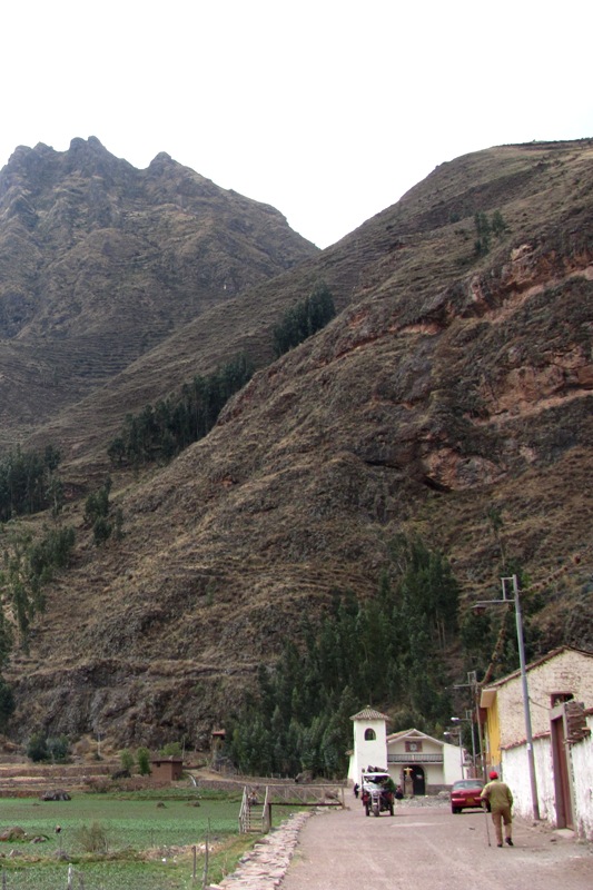 After eating a breakfast of chancho (pork) and tamales with them, Marcela and I were off to Pisa’q (Písac), a beautiful village nestled in the Sacred Valley.  To leave Cusco in a convi there was a lot of up, up, up and to descend to Pisa’q, a lot of down, down, down…