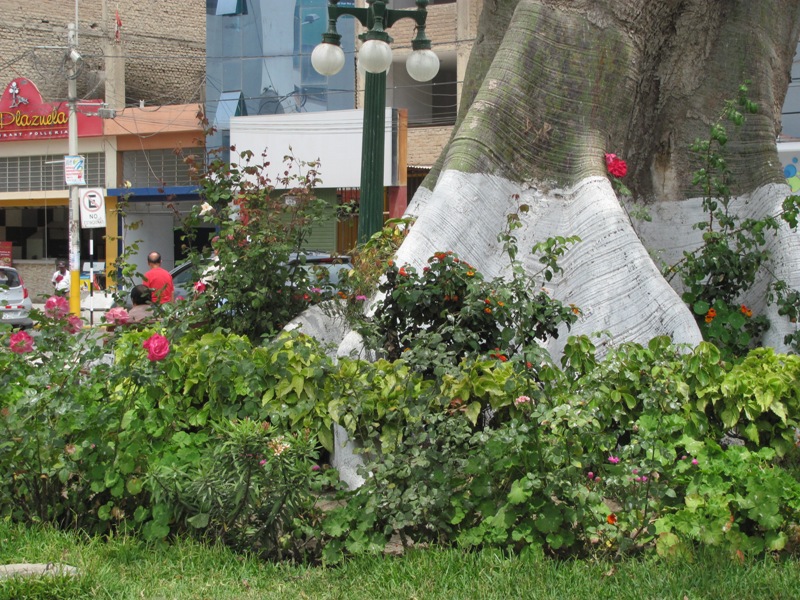 …where many flowers are in bloom. Trees here are painted white at the bottom to prevent rotting.