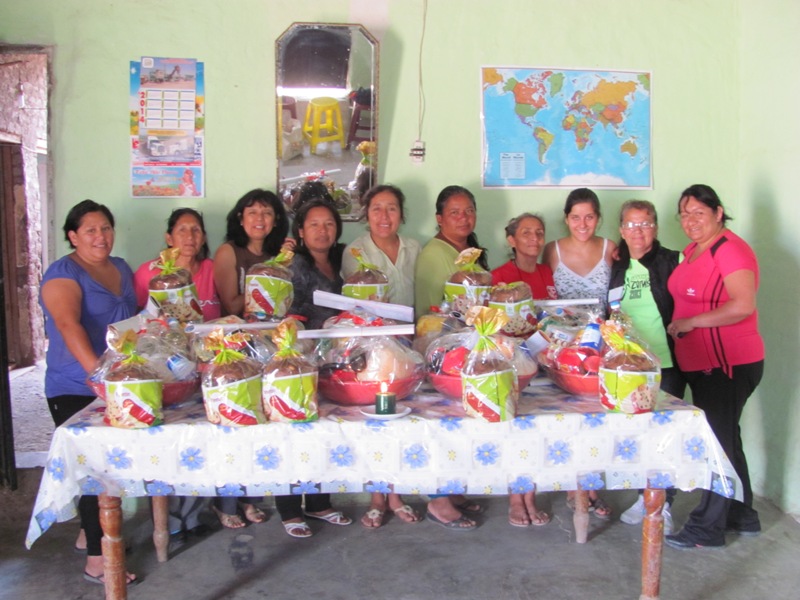 December 24th: Mothers being given baskets with food ingredients that they themselves worked to earn as the team that ran the Project Chiclayo nutrition program in Raimondi. /  El 24 de diciembre: La entrega de canastas de ingredientes a madres que trabajaron ellas mismas para ganárselas en el equipo que manejó el programa de nutrición del Proyecto Chiclayo en Raimondi.