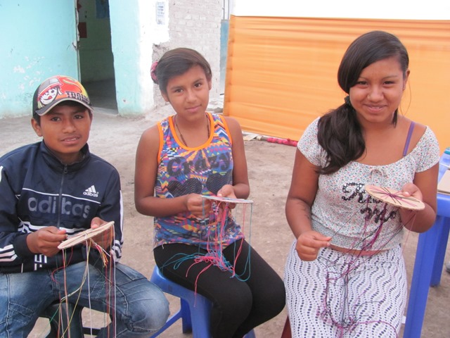 Yesterday’s session with youth in Antonio Raymondi: I taught the group to make Japanese ‘kumihimo’ bracelets.