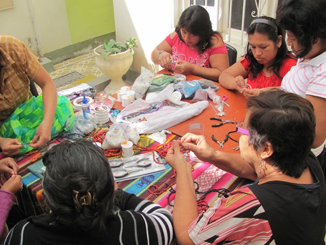 That same morning, some other ‘artesanas‘ jumped into jewellery-making. We are trying to encourage the use of natural Peruvian beads, some of which are made of seeds from the Amazon rainforest region. As I used to make and sell jewellery at farmer’s markets in Canada, this creative time brought back memories (especially muscle memory)!