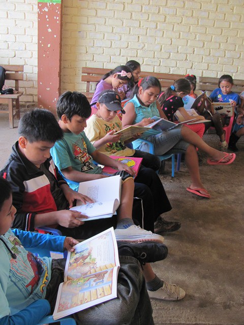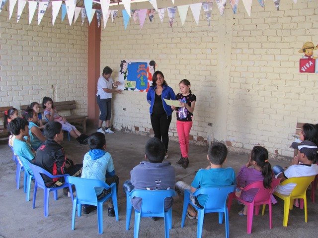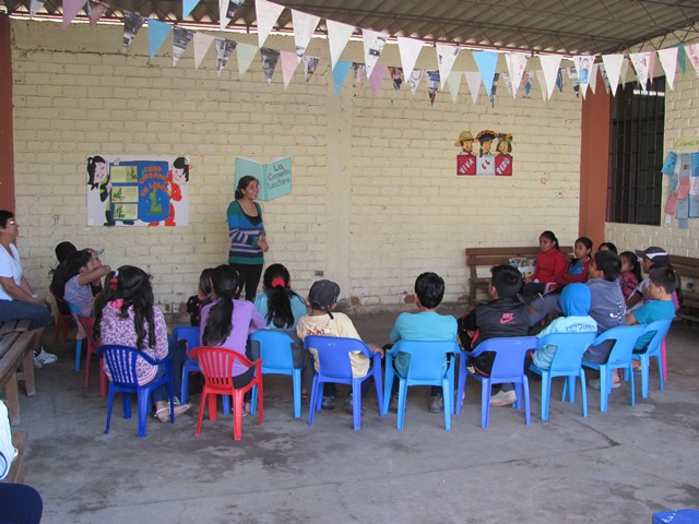 we found the children discussing how to care for books with their Project Chiclayo teacher Julissa,