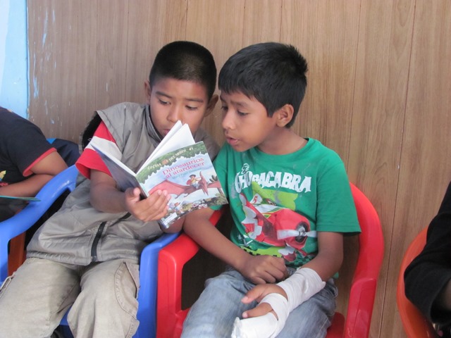 The books in La Cometa Lectora (Reading Kite) library are not your average books; each has been carefully selected to provide learning opportunities. Many provide examples of admirable values or character (such as sharing, striving to reach one’s dreams, helping others, overcoming difficulties) through coming to know human or animal characters (in many countries, habitats or imaginary places!). Others are designed to help readers learn about geography, animals, or the human body. Although there are other books in the Reading Kite library, those used so far in Cometa visits have included the most basic of ‘board books’ (books printed on thick paperboard pages for our toddlers) up to basic chapter books.