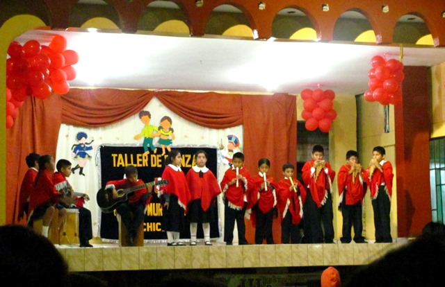 The school’s Peruvian instrumental ensemble complete with cajón players, a guitarist, two singers, recorder players and zampoña players. A talent-filled band also performed.