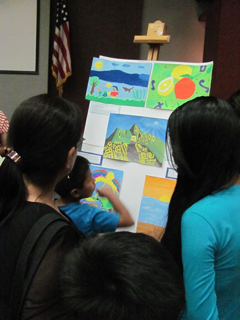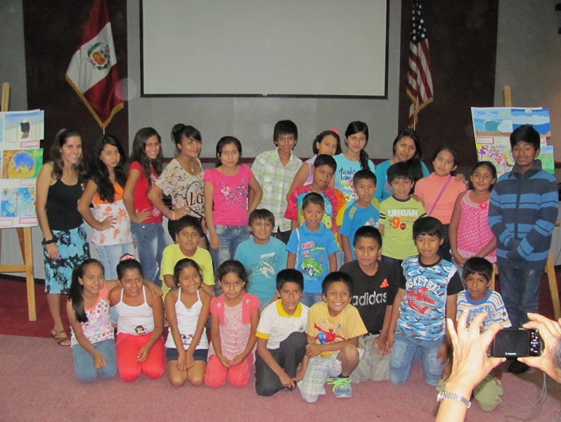 The art exposition at the end of February in the ICPNA; seen here are values painted on wood, which now adorn the different Project Chiclayo program locations. These were completed largely by the 12-14 year olds, although all the workshop participants learned how to draw 3-D letters.
