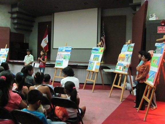 It is strange being back to a rainy spring in Canada, after leaving the end of a scorching summer in Peru. My work there over January, February and March kept me immersed in colours (through art) and words (through La Cometa Lectora). March brought the end of summer vacation and summer art workshops. Each week included leading three or four drawing or painting classes/workshops, some in the ICPNA (Peruvian-American Cultural Institute) and the rest in the village of La Ladrillera. Kids and their parents in all programs were very appreciative of the creative activity time during the long, hot days. Many beautiful pieces of artwork are now adorning family living rooms, while drawings from La Ladrillera will be used to illustrate a children’s storybook to be released later this year, The Perfect Gift.